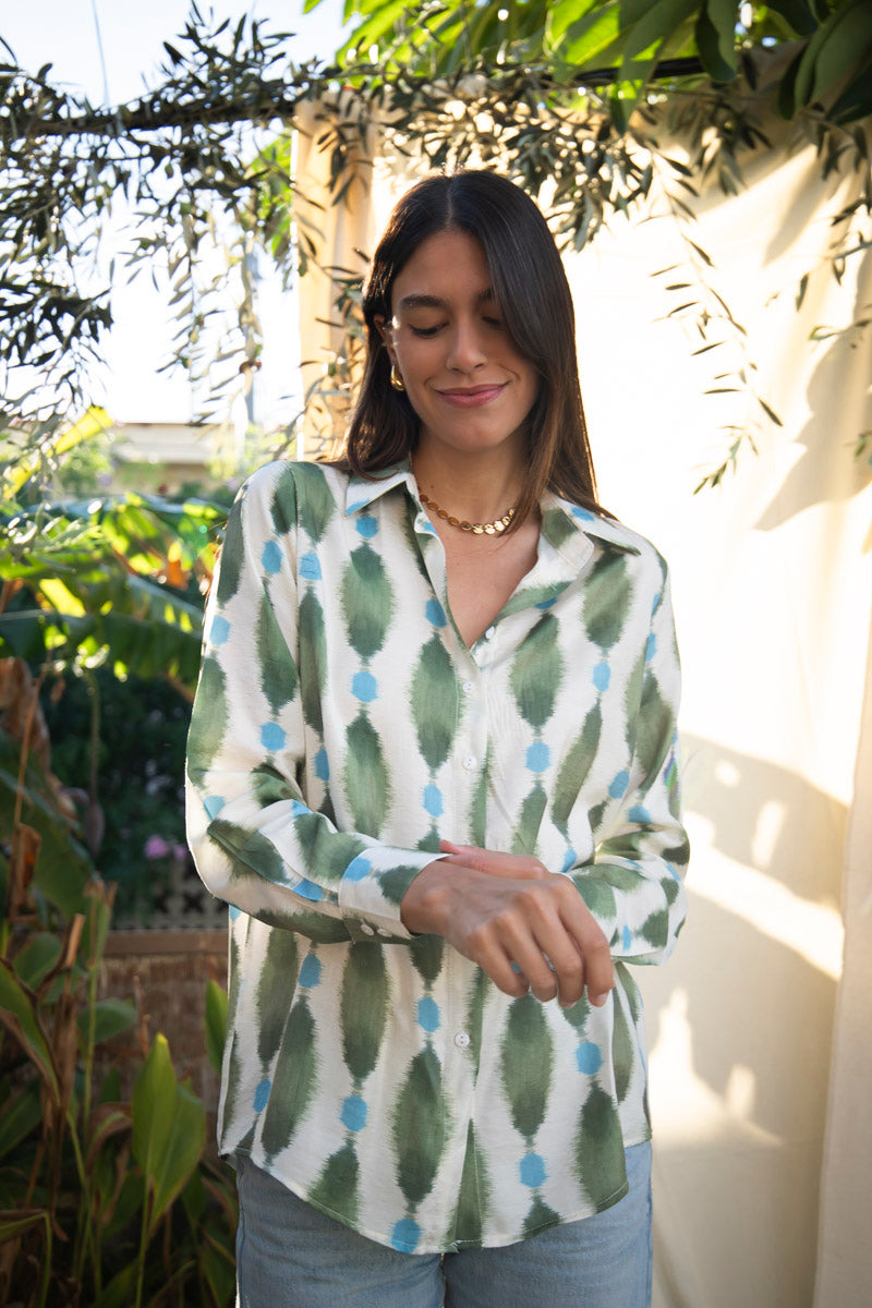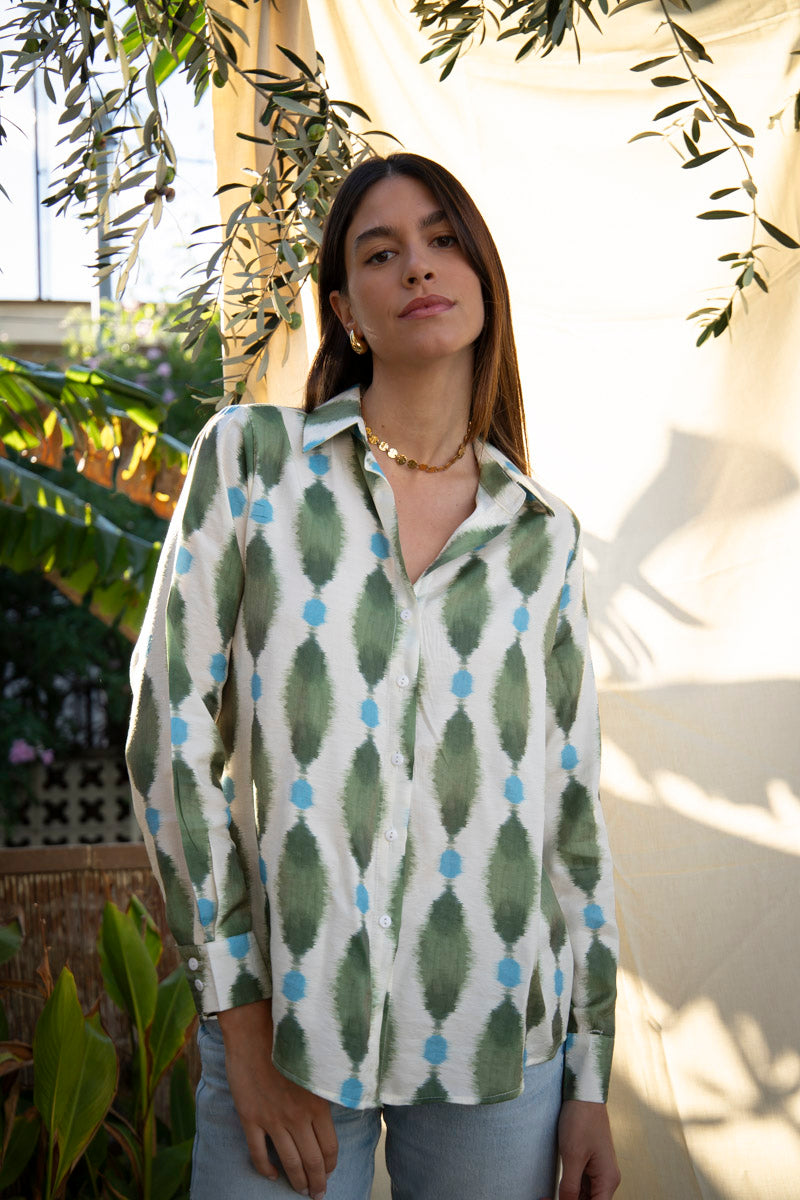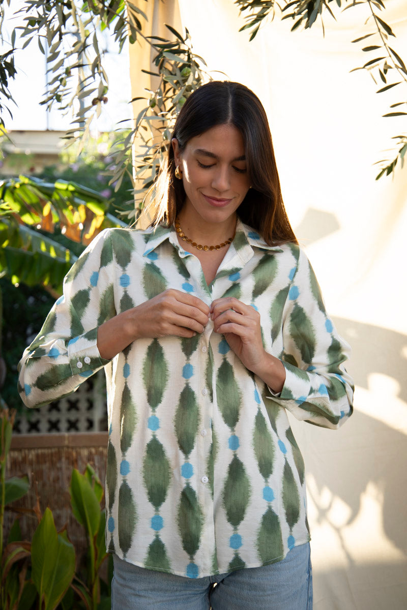 The Mariental shirt, made of 100% polyester, is the ideal option for those seeking comfort and style. With its stylish print in green and blue tones, this garment is perfect for both office looks and casual styles.
