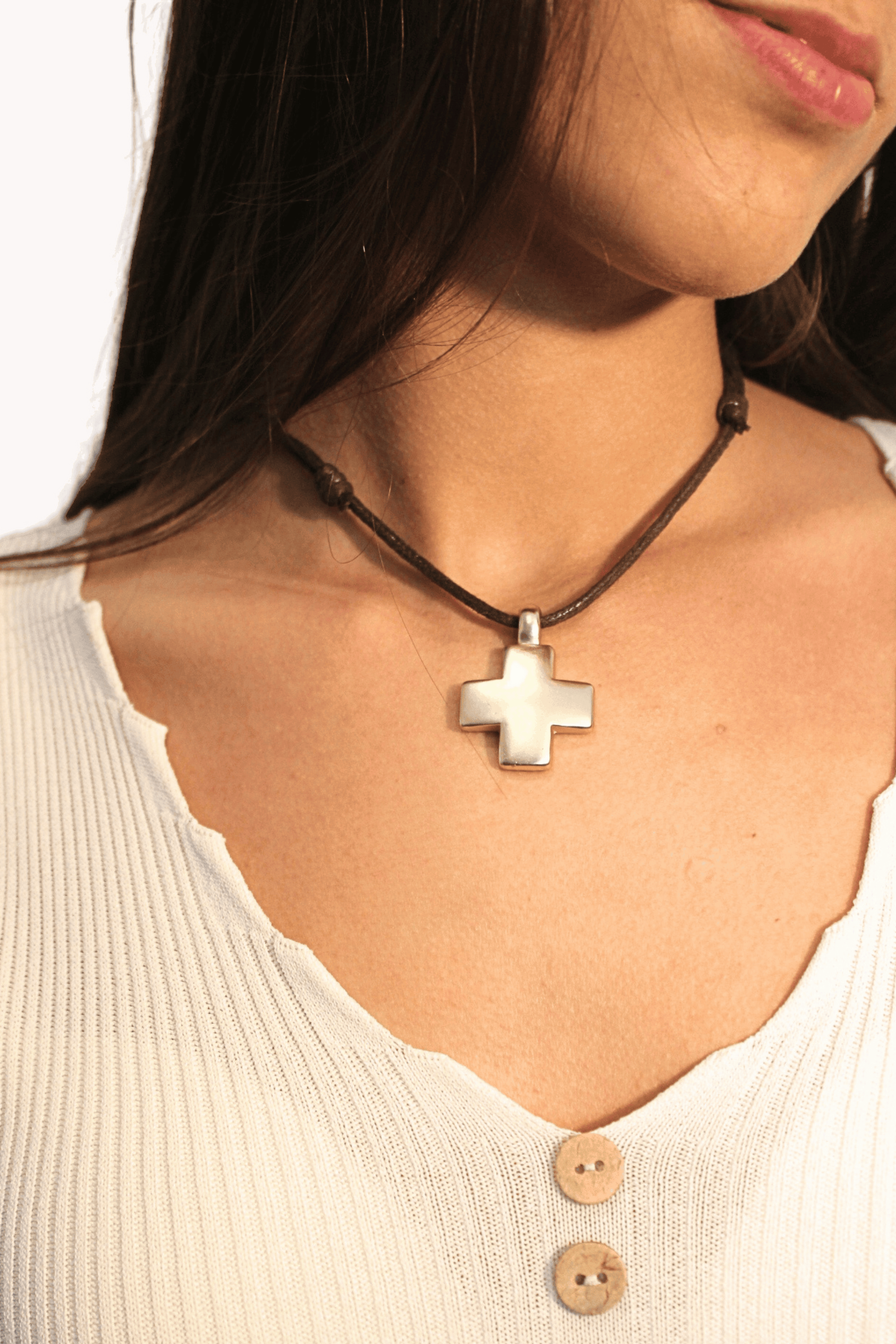 The Accra Necklace is an elegant silver cross that stands out for its sophisticated and timeless design. This necklace features an adjustable and adaptable cord, ensuring a perfect fit for any occasion.