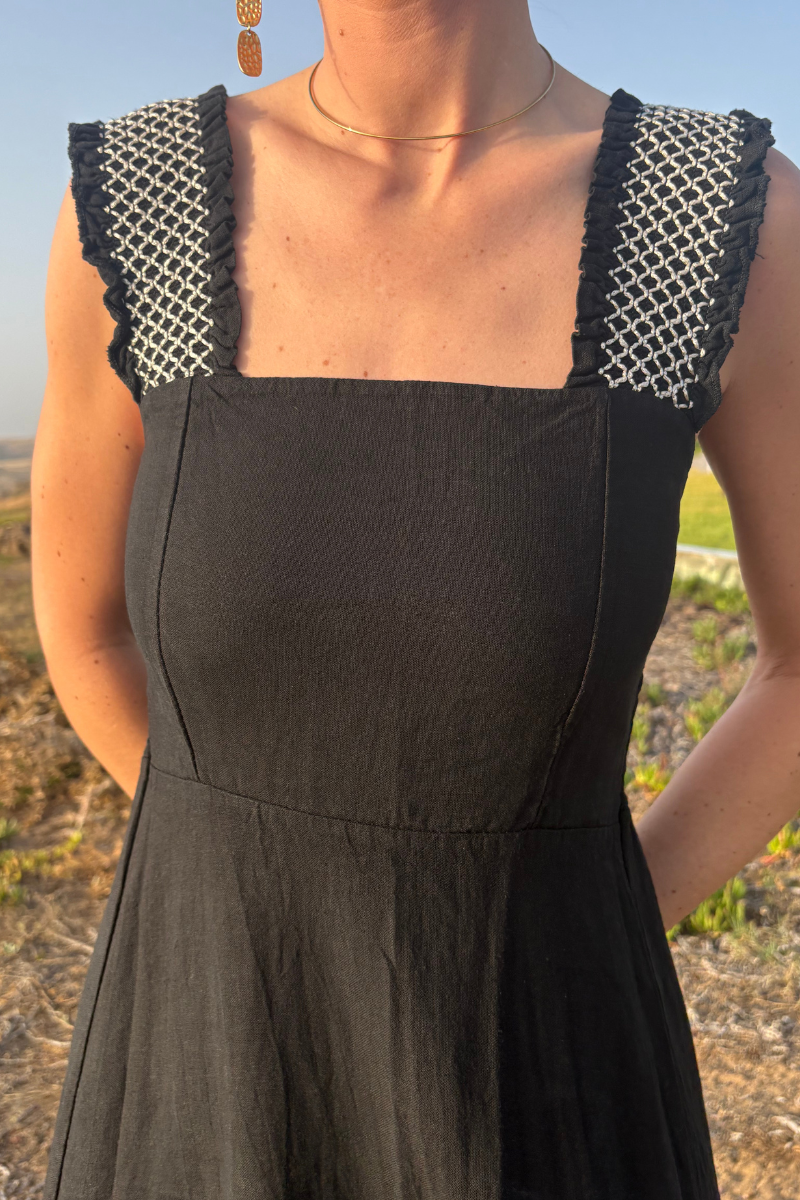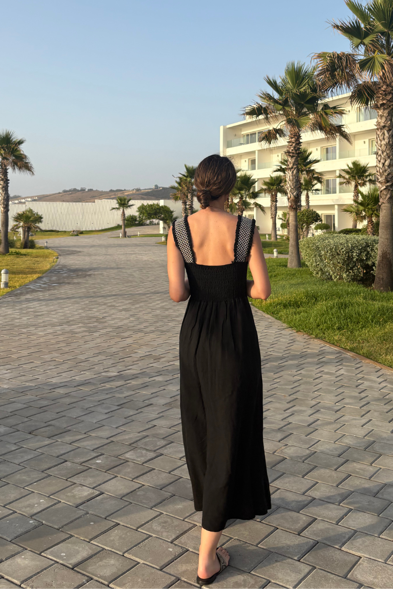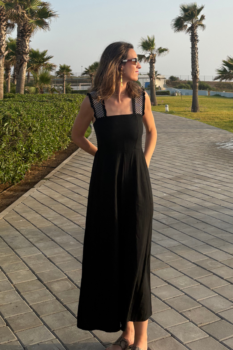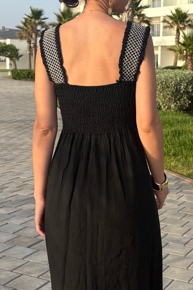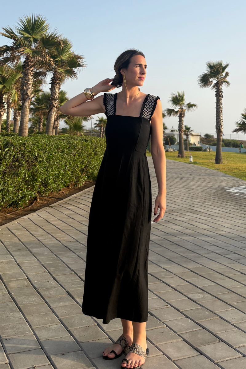 The Larache Dress is ideal for both special occasions and a more relaxed style. Its adaptable design includes elastic in the back, making the one size easily fit different bodies and silhouettes. A dress that combines style and comfort!