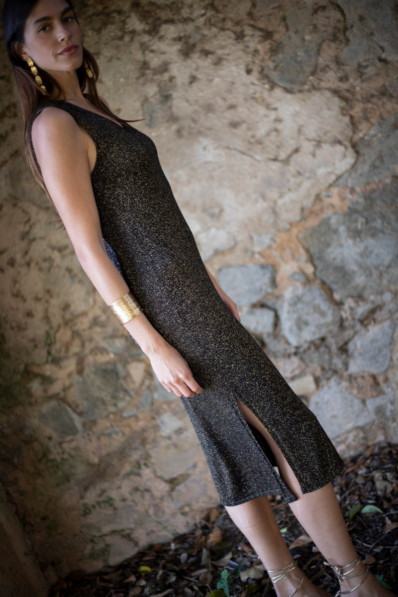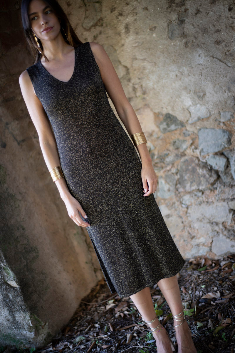 Lurex dress, one size, designed to fit flattering and comfortably to different figures.