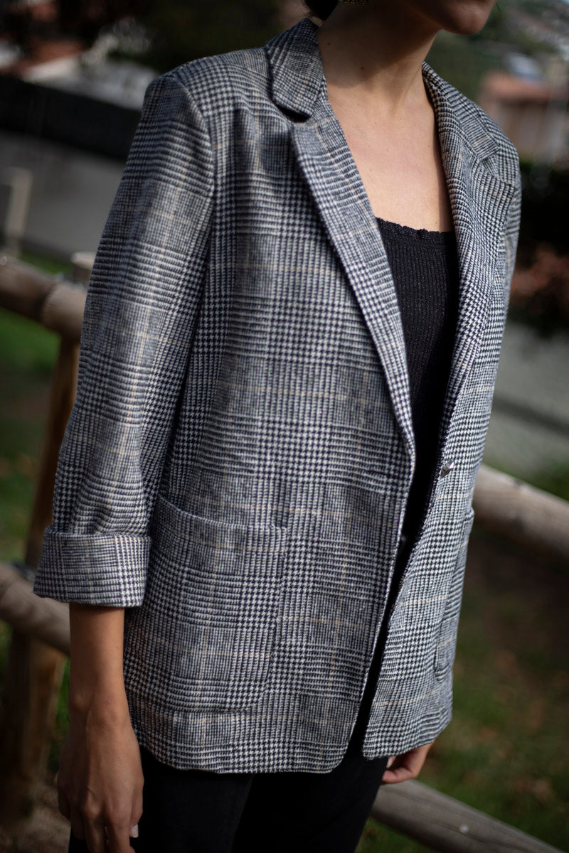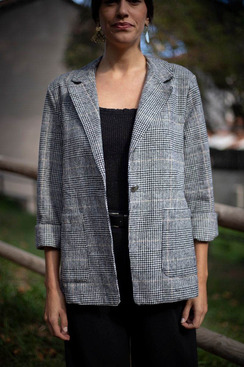 La Americana Nola es la prenda versátil que te acompañará en cualquier ocasión. Con su clásico estampado de cuadros y corte amplio en talla única, esta americana ofrece un ajuste favorecedor para distintas complexiones. Puedes llevarla con vaqueros para un look casual o con pantalón negro para un estilo más formal, ideal para la oficina. Su diseño combina elegancia y comodidad, adaptándose a cada momento del día.