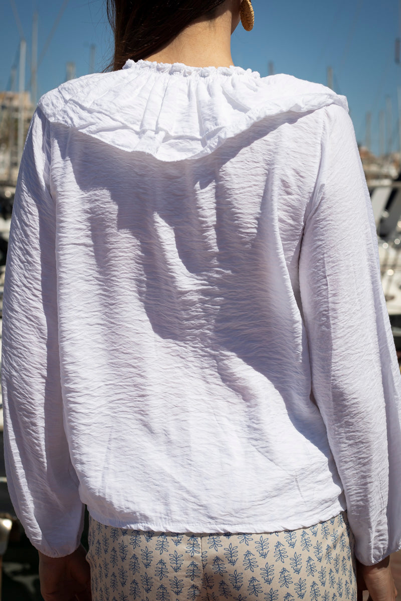 Sus mangas largas terminan en una goma suave en el puño, lo que te permite llevarlas abullonadas o subidas con un aire más casual.