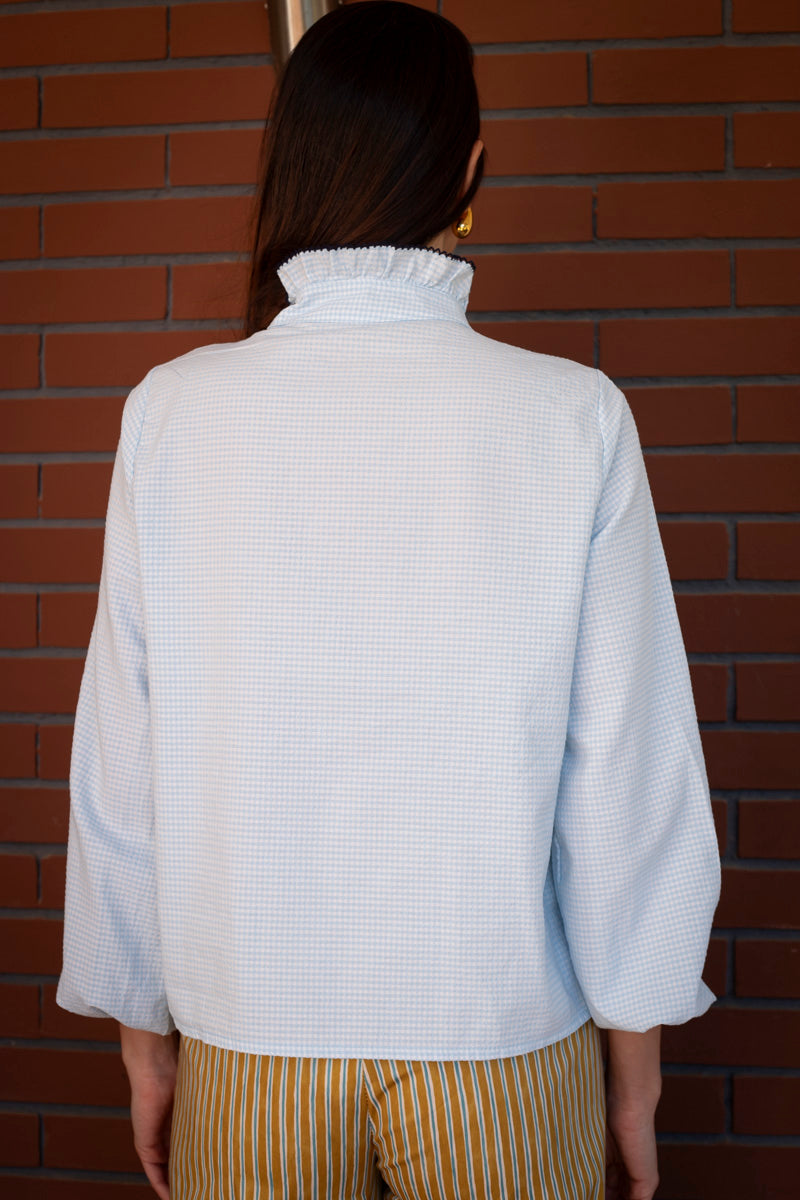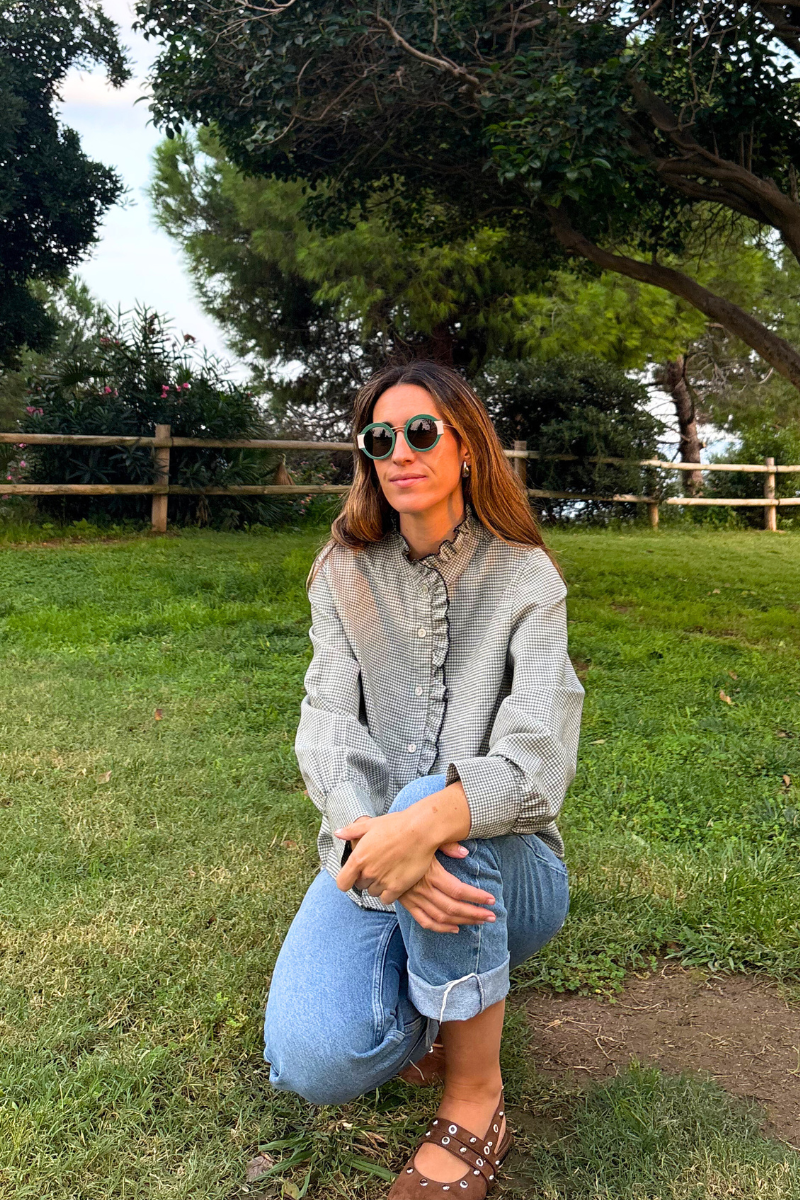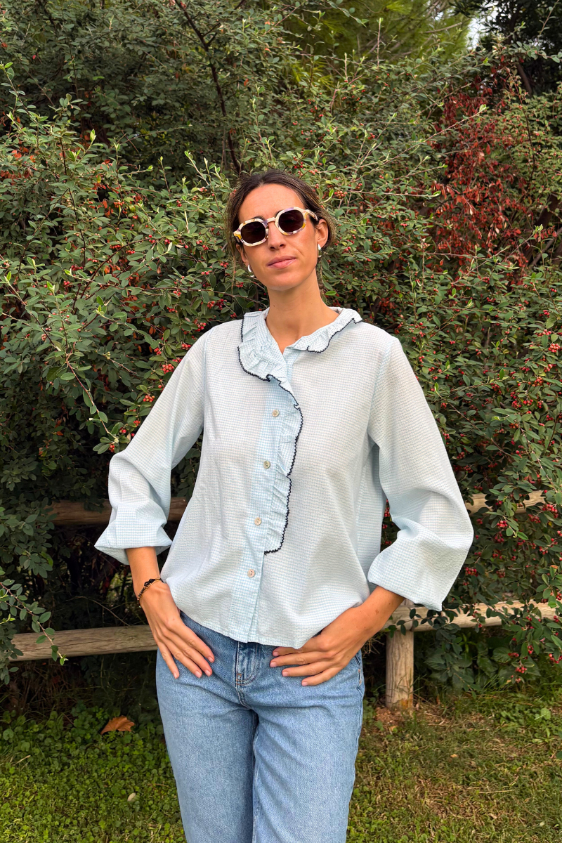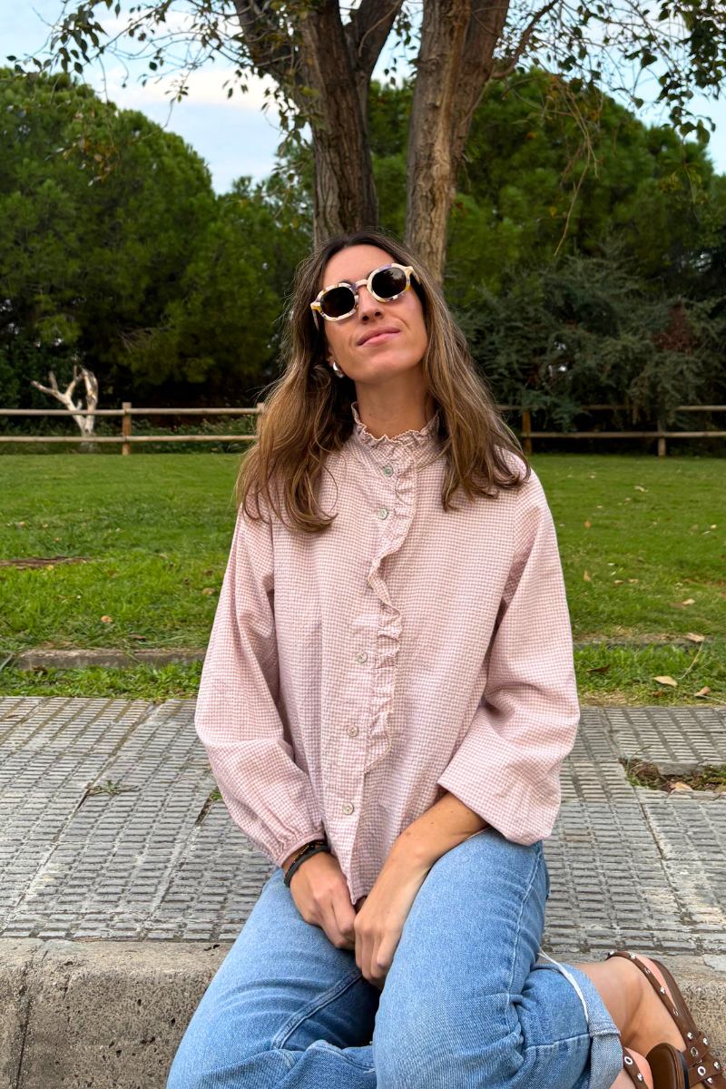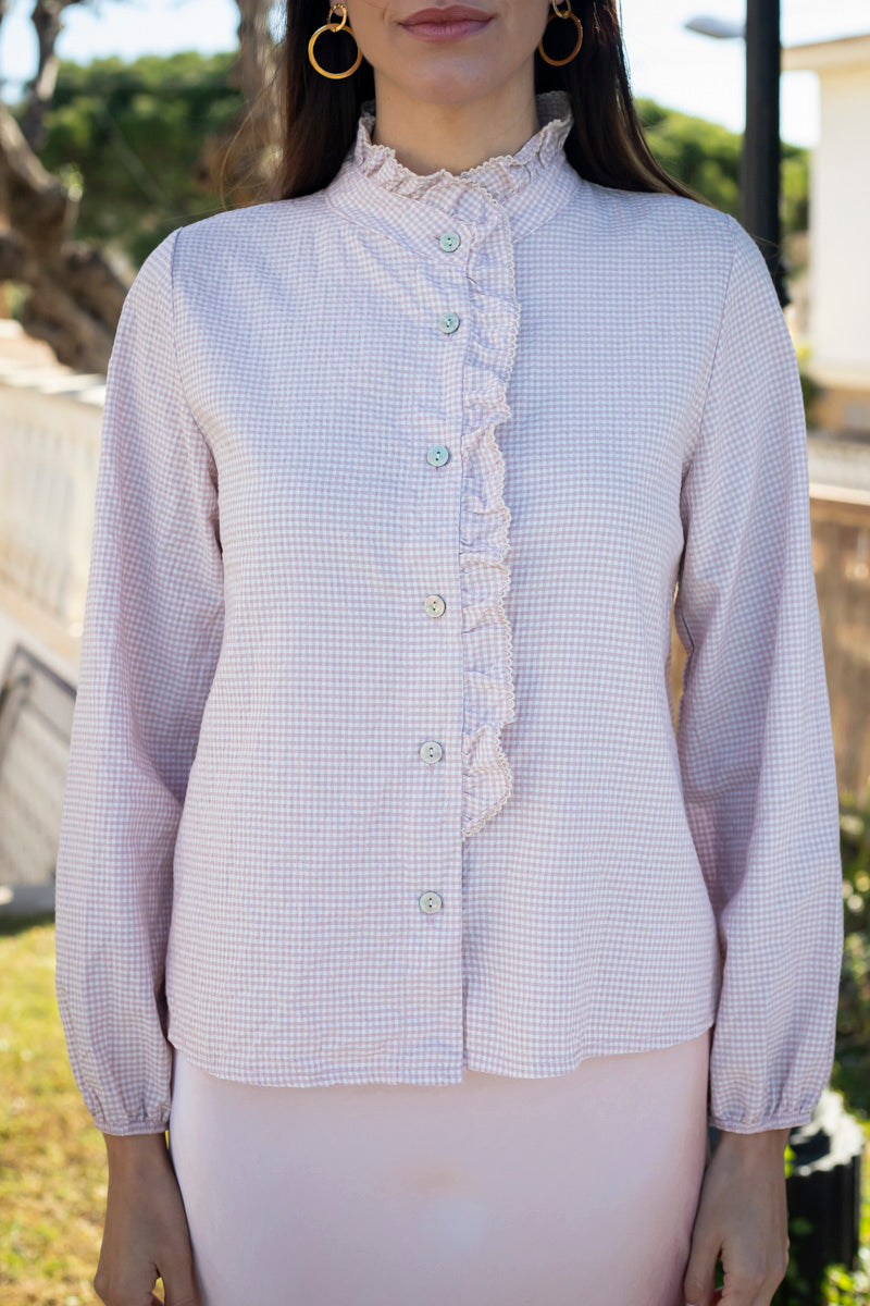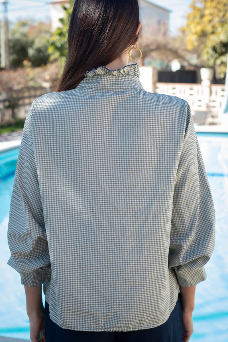 Con un estampado de cuadros atemporal y un favorecedor volante lateral, la camisa Divo es un imprescindible en tu armario.