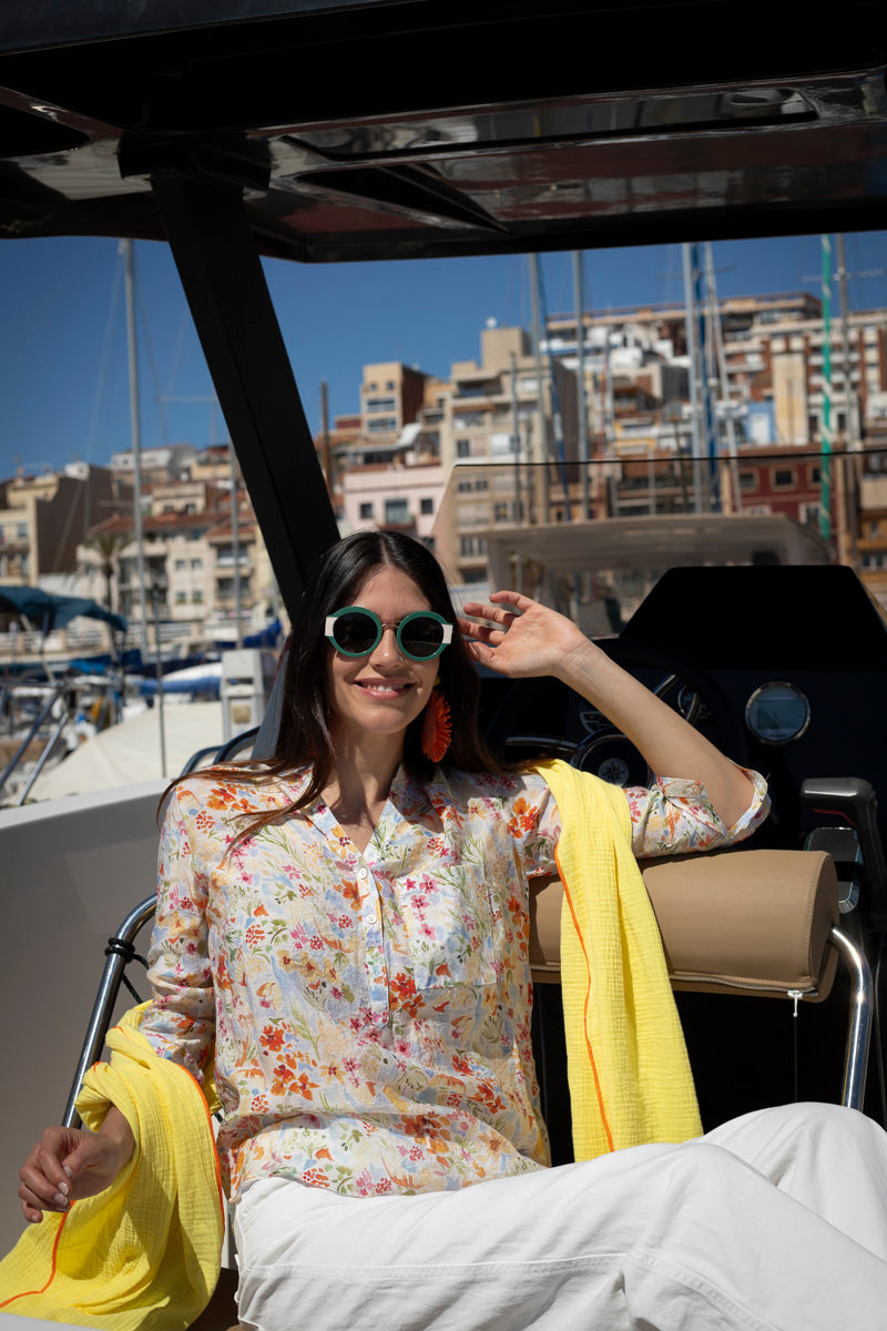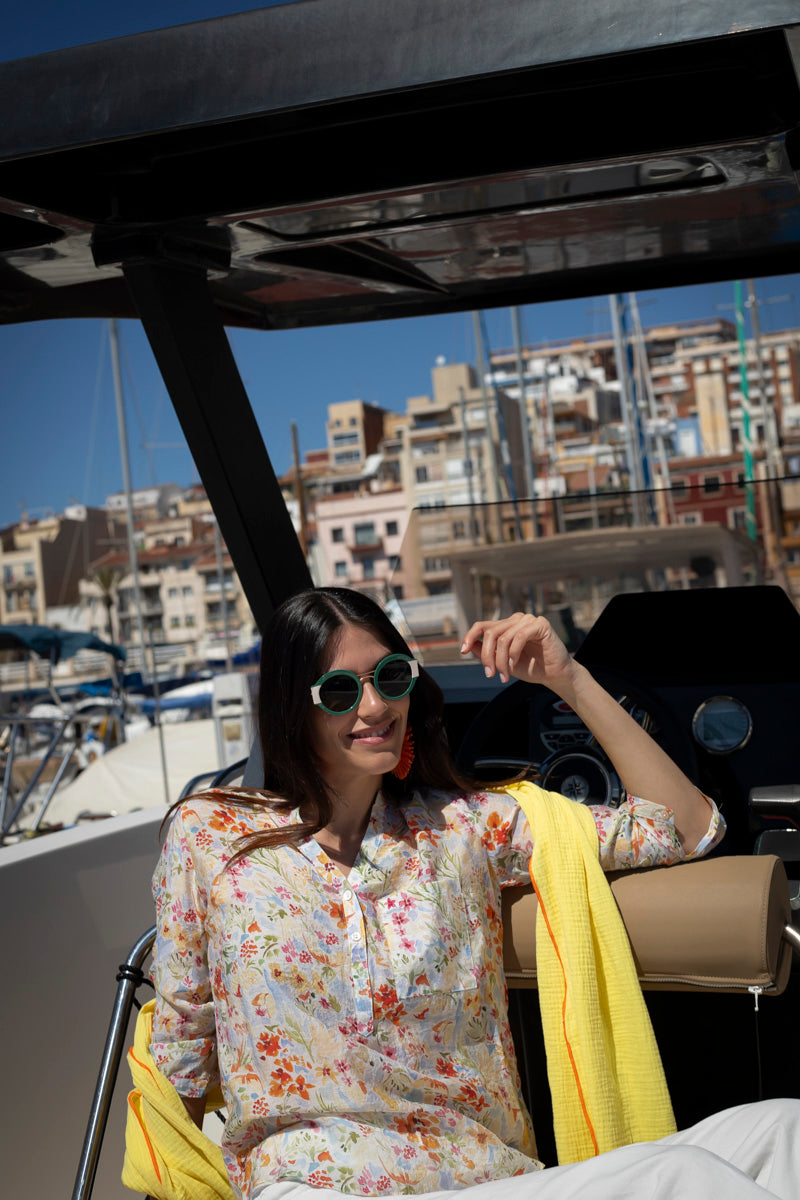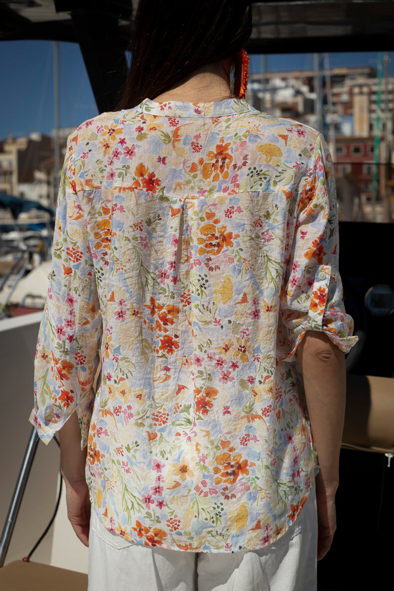 Su estampado floral delicado añade un aire femenino y natural, mientras que el cuello tipo polera con cuatro botones te permite regular el escote según tu estilo o la ocasión. Además, las mangas llevan un botón interior para que puedas ajustar la largura y llevarlas dobladas con un toque más relajado.