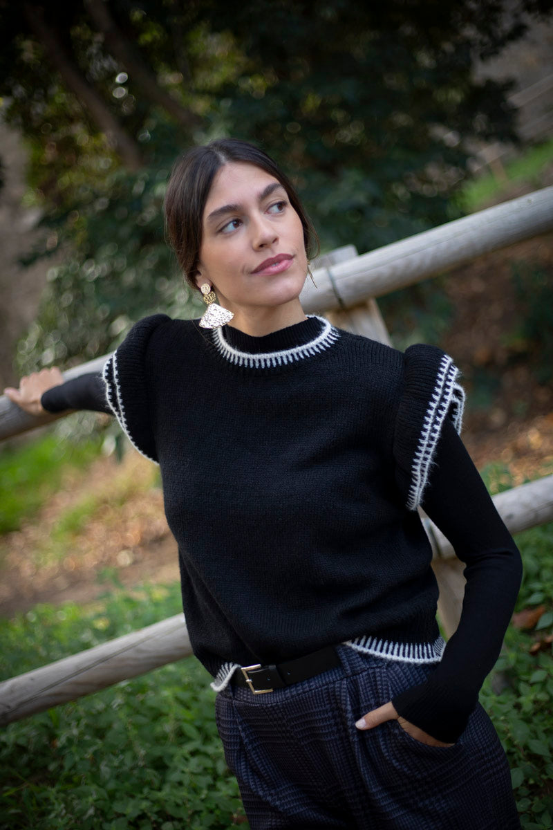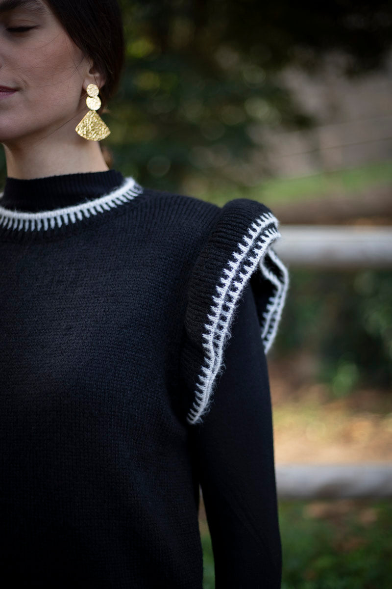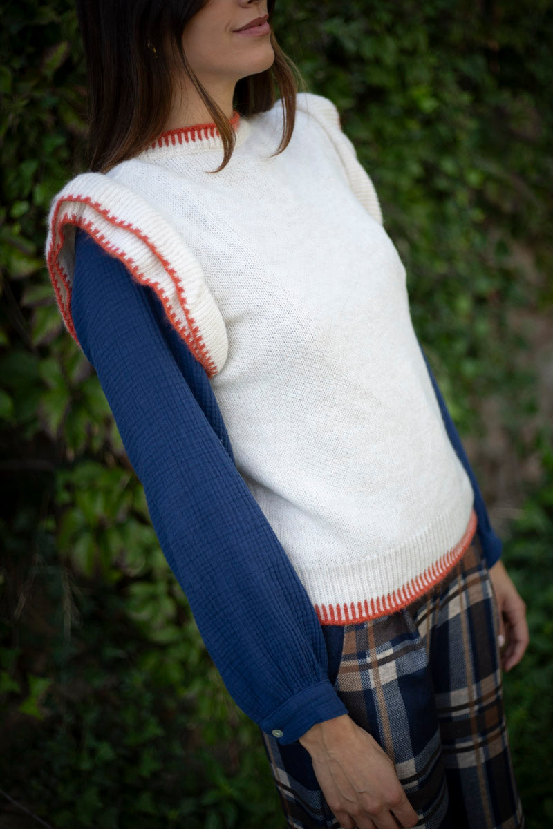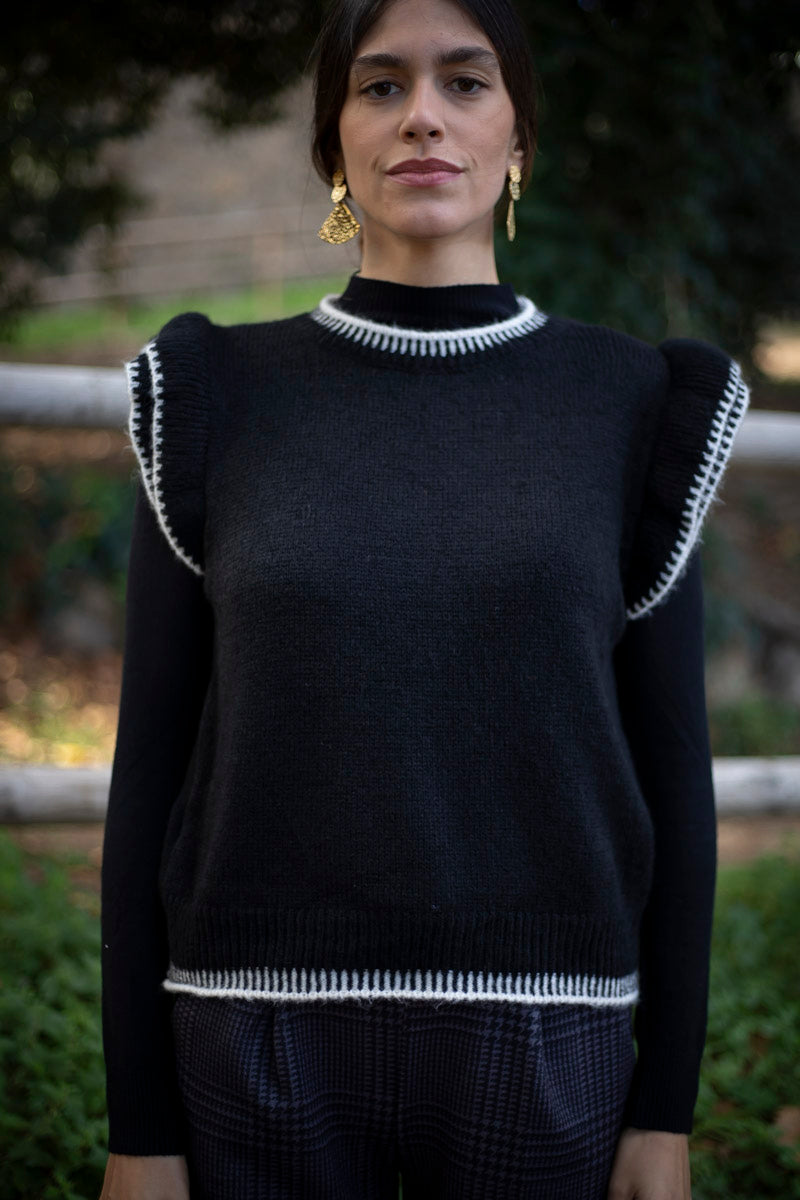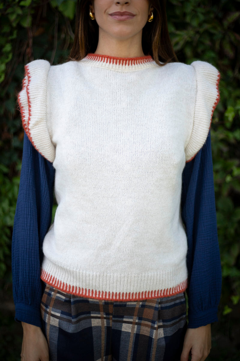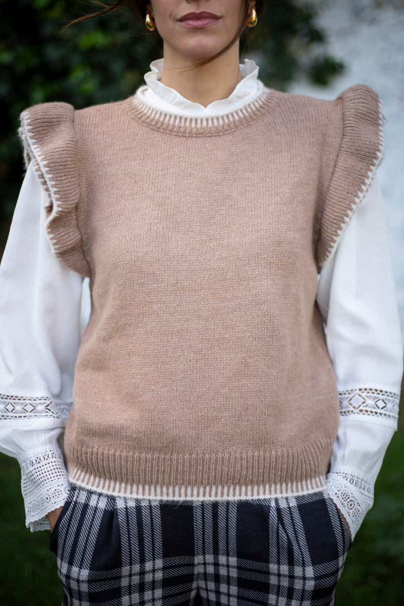 Los volantes del Chaleco Burco en las mangas y el ribete en contraste le dan un toque especial y distinguido, ideal para añadir un toque de estilo a cualquier look. Disponible en 3 colores. Diseñado en talla única, el Chaleco Burco se adapta cómodamente a diferentes tipos de cuerpo, brindando un ajuste favorecedor y único.