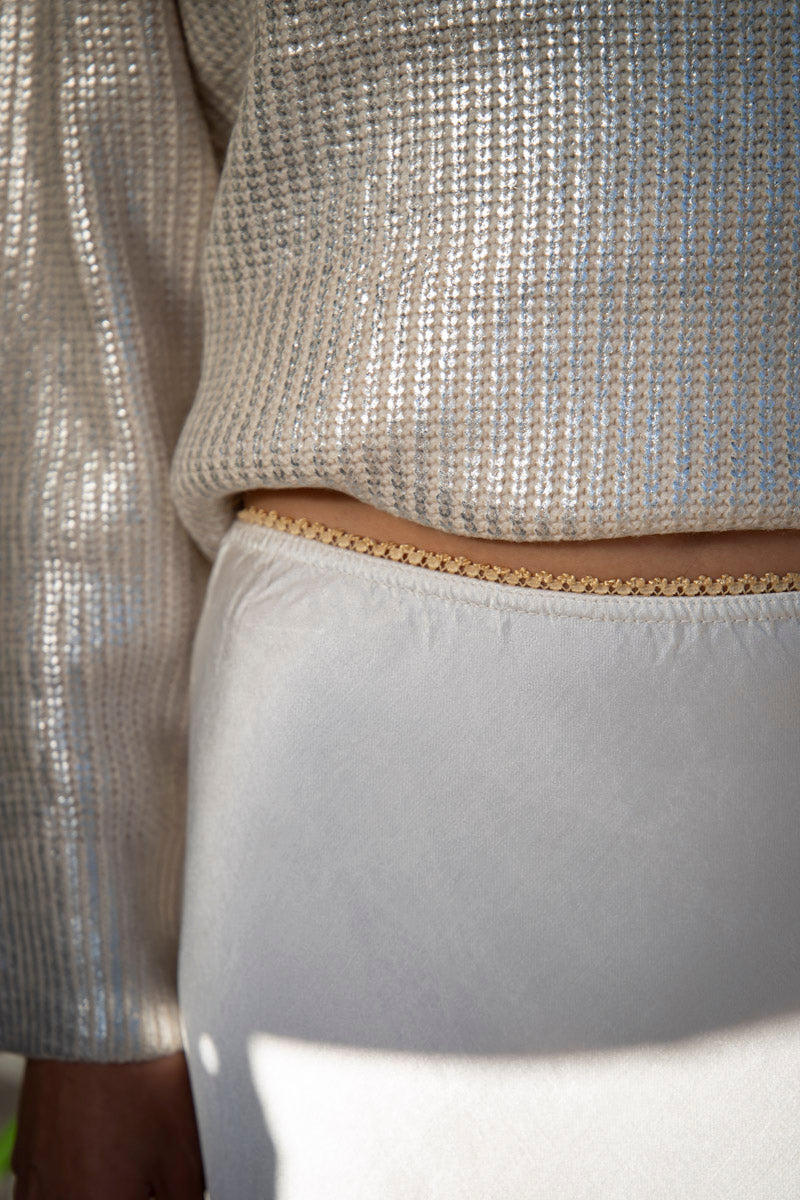 Con un corte recto y goma elástica en la cintura, se adapta a diferentes tipos de cuerpo.