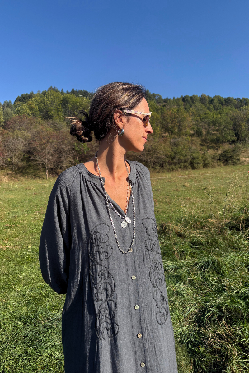 Ideal para looks casuales o más formales, el vestido Lüderitz se convierte en una pieza versátil que destaca tanto de día como de noche.